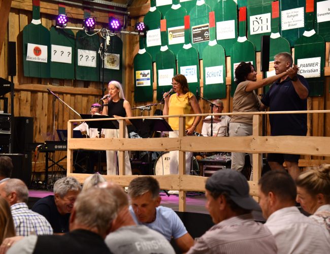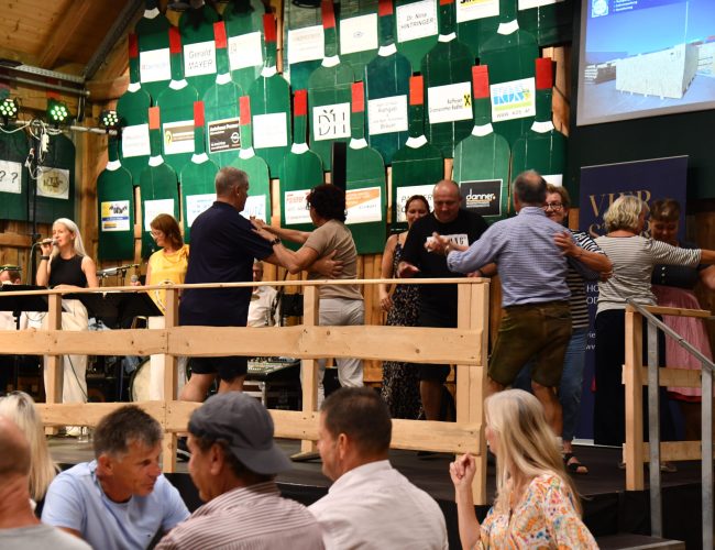 Beim jährlichen Weinfest des Musikvereins Oberneukirchen am 31. August 2024 im Schnopfi-Stadl wurde bei schwungvoller Musik kräftig das Tanzbein geschwungen.